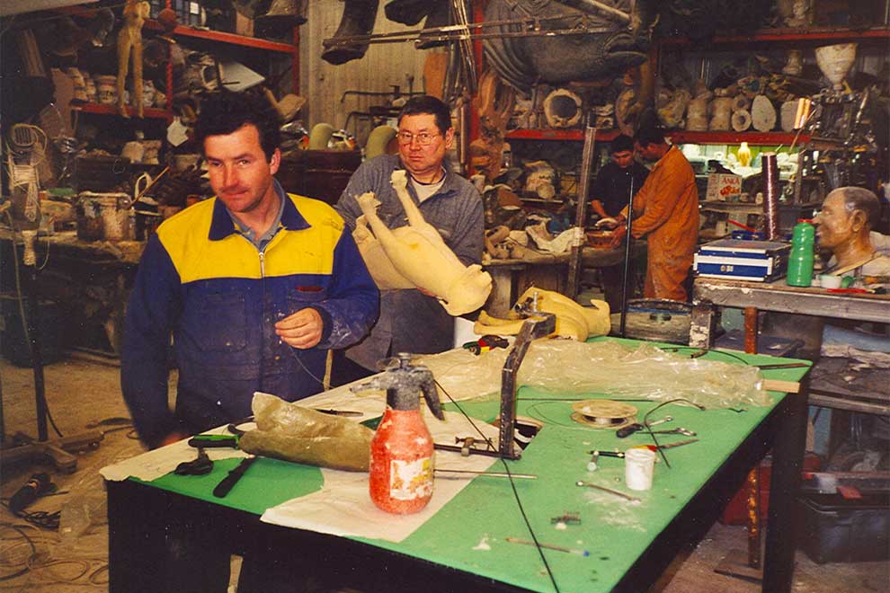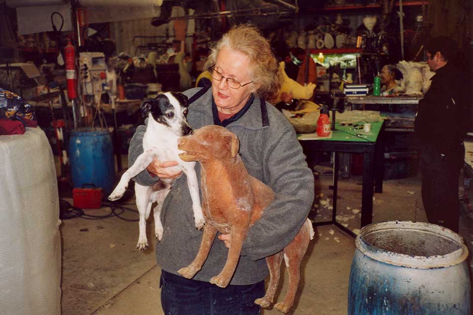 In the story Rasmus has to pull his head and legs into his just like a turtle under its shell. Since this is not physically possible for a dog, it was necessary to make an exact copy of Rasmus which could do this stunt. The pictures below are from the company that made the model and where Rasmus had to stand model several times.